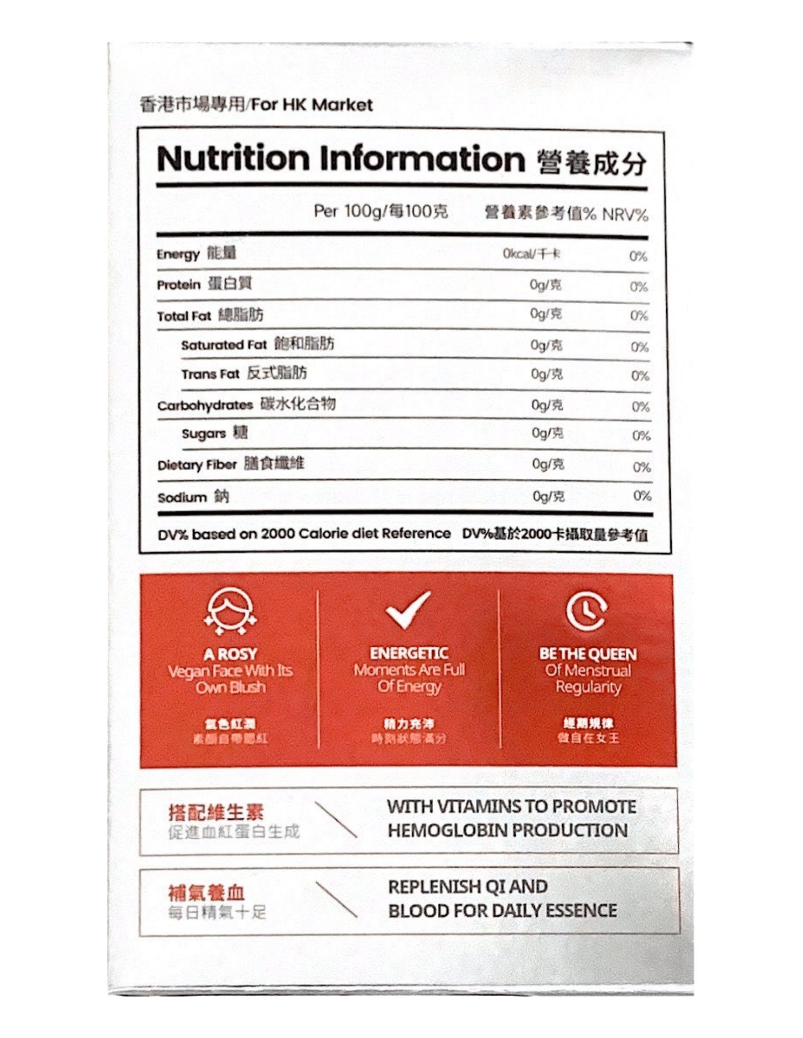 - 本產品不含人工色素、甜味劑、香精、防腐劑、雞蛋、牛奶、麩質、乳糖